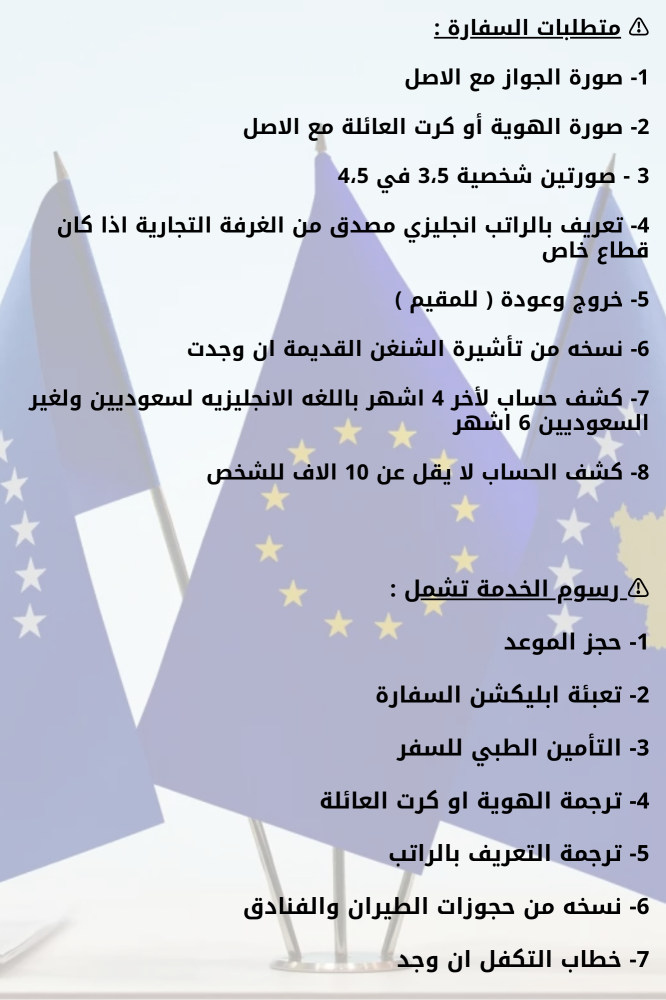 استخراج تأشيرة شنغن وتجهيز ملف يخصك فيه جميع متطلبات السفارة (فقط بـ 350 ﷼ على كل عميل ) .